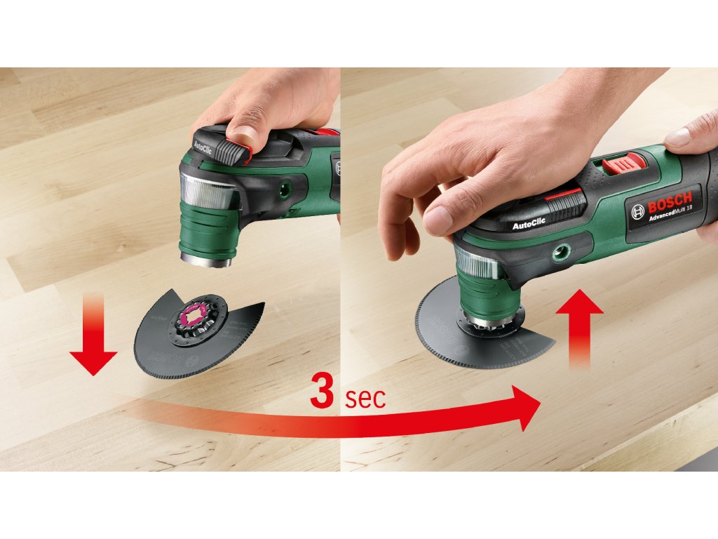 - Systém Bosch AutoClic: Blesková výměna příslušenství bez nástrojů za pouhé 3 sekundy.