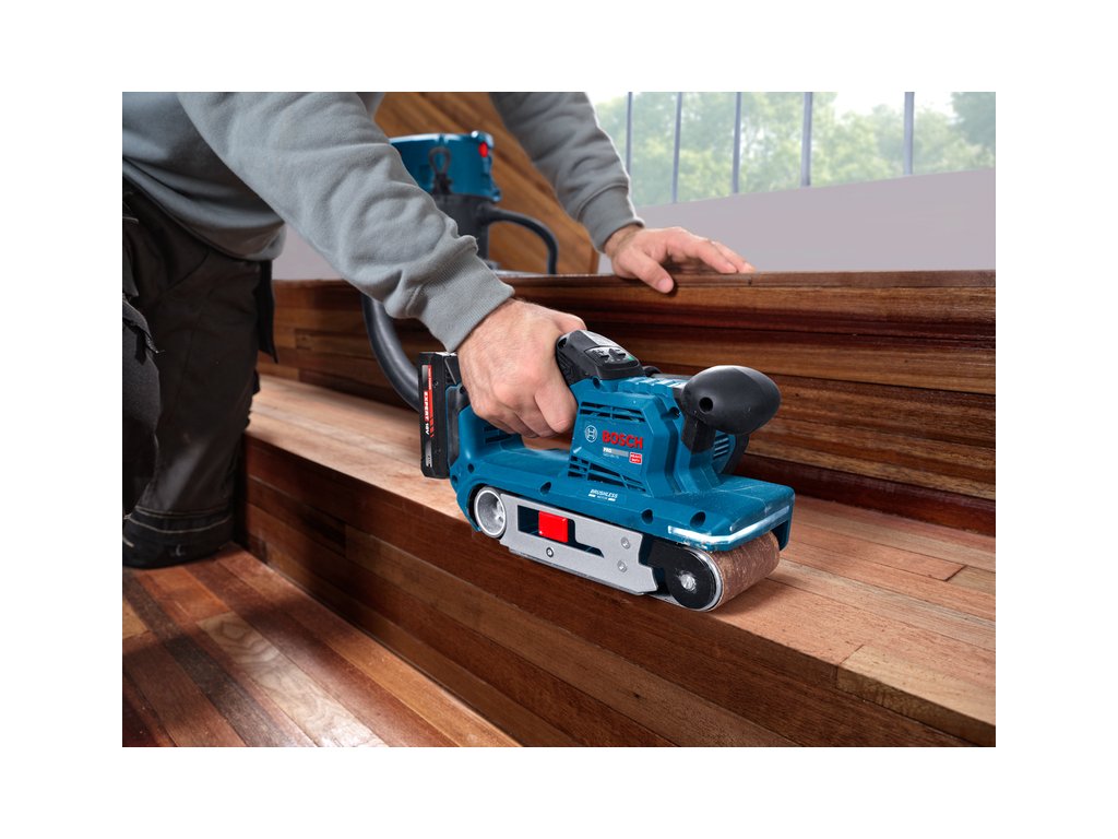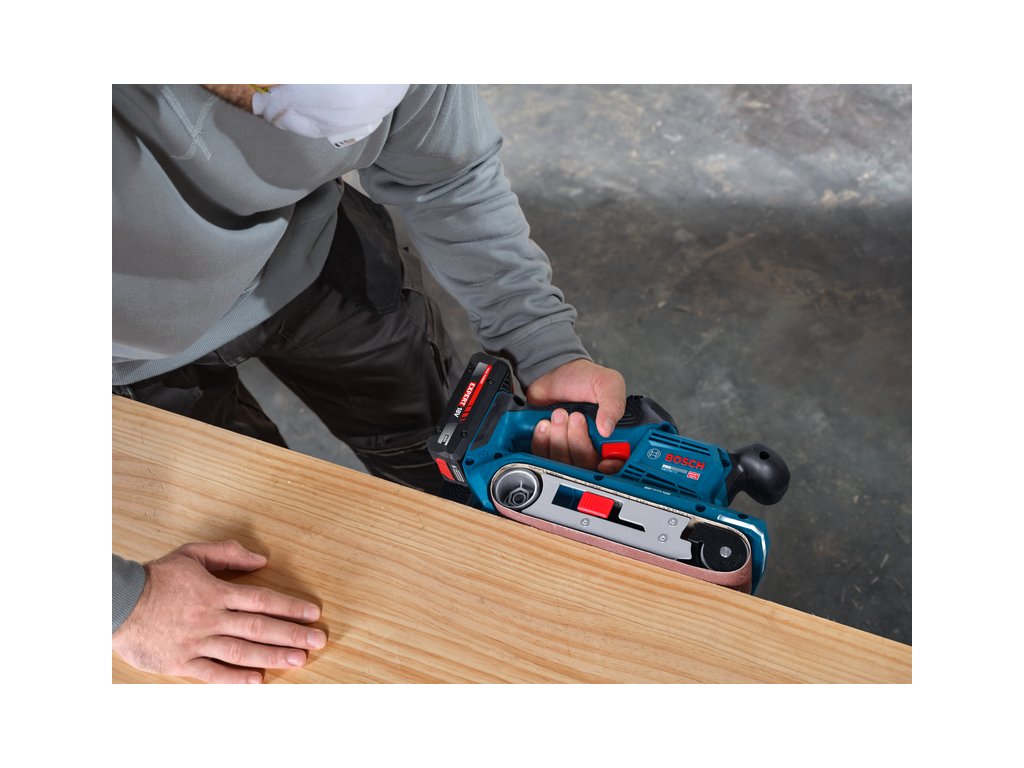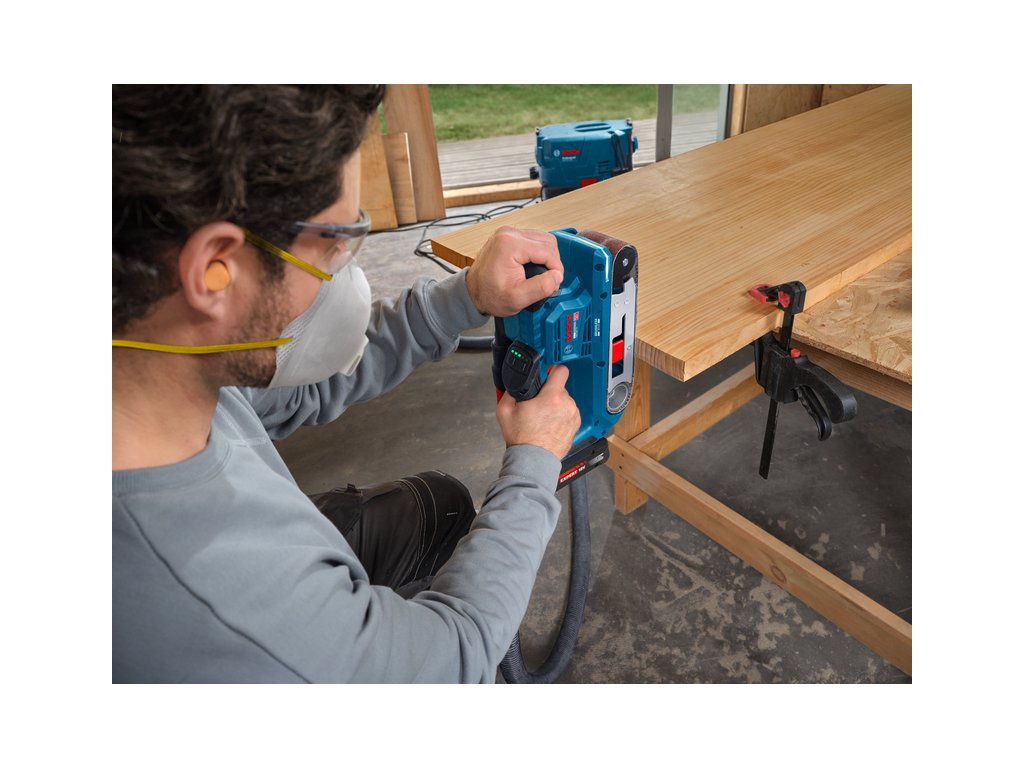 Pásová bruska Bosch GBS 18V-75 představuje novou generaci broušení s bezkartáčovou technologií. Stroj je navržen pro náročné tesařské a truhlářské práce, kde je vyžadována rychlost a přesnost. Díky integrovanému rozhraní HMI máte okamžitý přehled o stavu nářadí a můžete plynule regulovat rychlost pásu podle typu materiálu. Bezpečnost práce zvyšují inteligentní senzory ochrany proti pádu a nárazu, které chrání nářadí i uživatele. S nízkou hmotností 2,6 kg a ergonomickým úchopem je manipulace s bruskou pohodlná i při vertikálním broušení nebo práci nad hlavou.