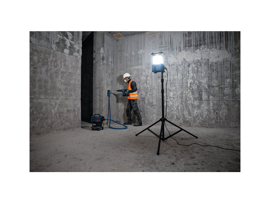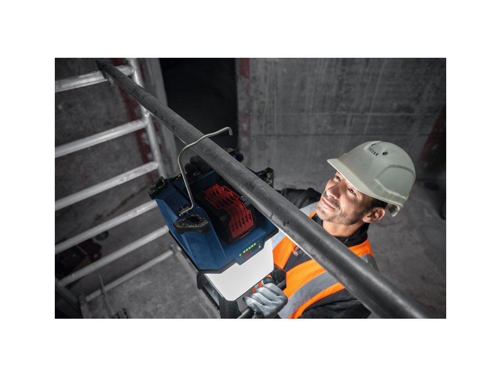 - Světlo je vybaveno standardním 5/8" závitem, takže je kompatibilní s většinou běžných stavebních a fotografických stativů, jako je například Bosch GLT 300-40.