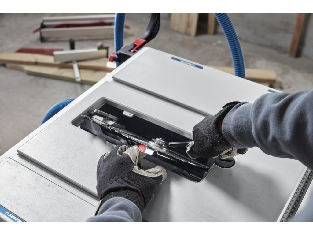 - Bezpečnost při práci: Pila je vybavena rychlým brzdovým systémem, pozvolným rozběhem a ochranným krytem.