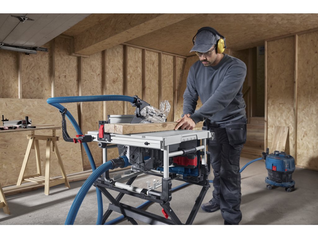 - Ano, pila je vybavena dvěma porty pro odsávání prachu (na krytu kotouče a na zadní straně nářadí) kompatibilními se systémem Bosch Click & Clean pro minimální prašnost.
