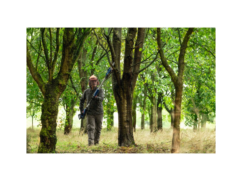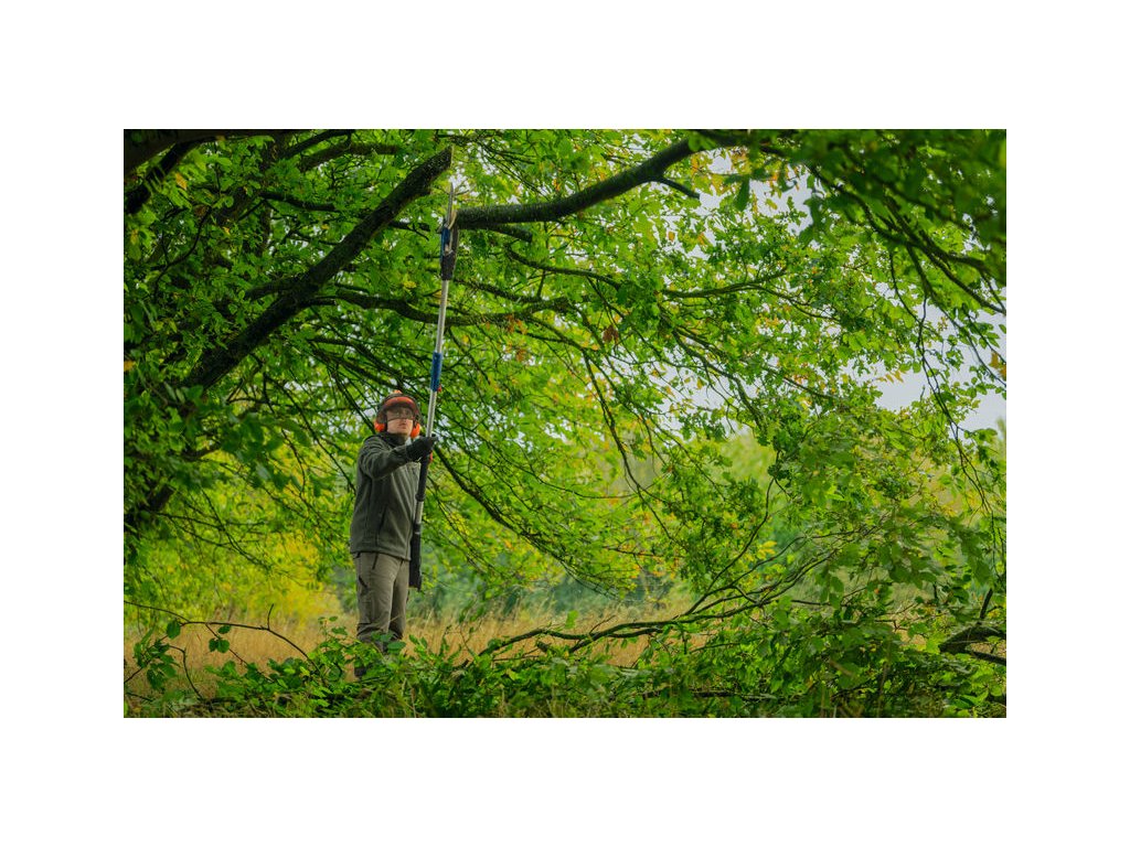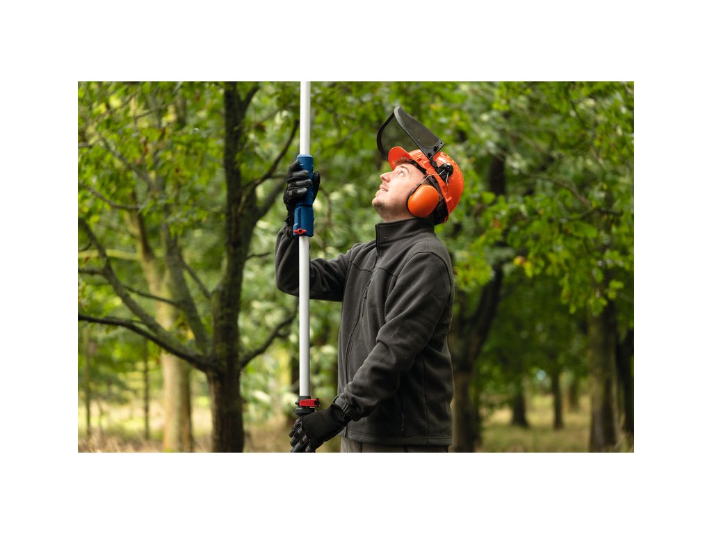 - Práce ve výškách ze země: Dlouhá teleskopická tyč s dosahem až 2,9 m pro bezpečné řezání bez žebříku.