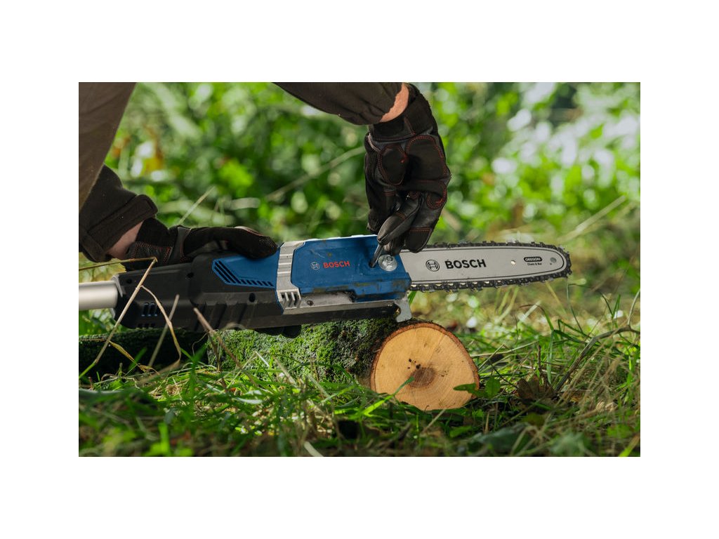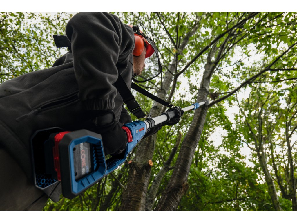 S teleskopickým prořezávačem GKE 18V-25 TP Professional od Bosch zvládnete údržbu vysokých stromů a živých plotů bezpečně ze země. Díky výkonnému bezuhlíkovému 18V motoru a variabilní regulaci otáček prořezává i silné a houževnaté větve s lehkostí a přesností. Klíčovou výhodou je teleskopická tyč s dosahem až 2,9 metru, která eliminuje potřebu používat žebřík. Prořezávač je vybaven kvalitní 25cm lištou a řetězem Oregon, praktickým hákem na větve a snadným systémem napínání řetězu. Navíc nevypouští žádné zplodiny, má nízkou hlučnost a pro snadnou přepravu ho lze rozdělit na dvě části.