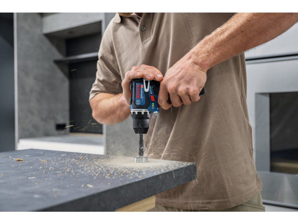 Vysoký výkon dovoluje vrtání velkých otvorů až do průměru 35 mm (např. sukovníky pro nábytkové panty).