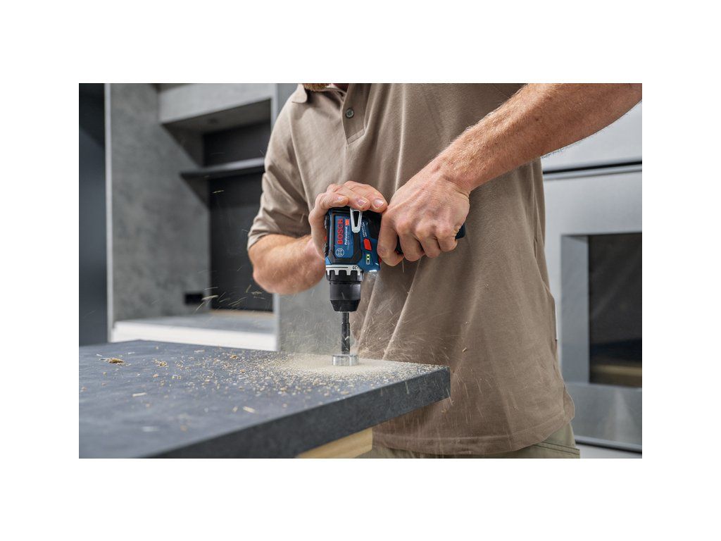 Vysoký výkon dovoluje vrtání velkých otvorů až do průměru 35 mm (např. sukovníky pro nábytkové panty).