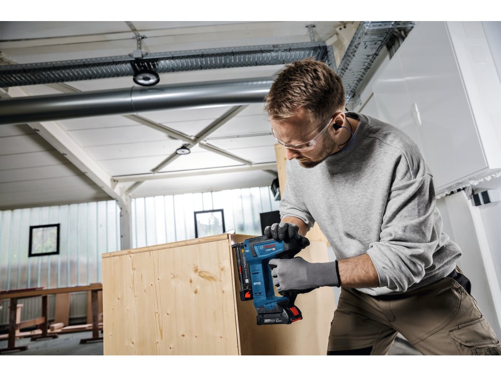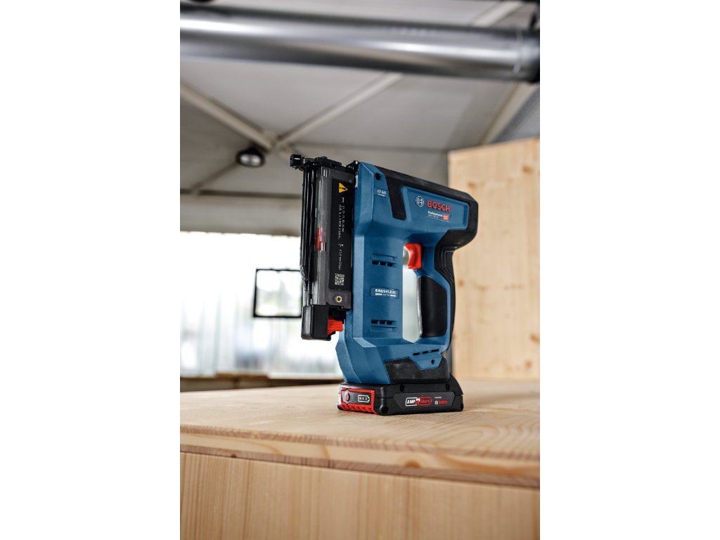 Akumulátorová hřebíkovačka GNH 18V-35 Professional je specializovaný nástroj pro profesionály, kteří vyžadují maximální přesnost a dokonalý povrch. Je navržena tak, aby zanechala obrobek bez jakýchkoli stop díky mírnějšímu zpětnému rázu, přesnému vedení zatloukacího mechanismu a speciálním ochranným podložkám. Srdcem stroje je výkonný bezuhlíkový motor v kombinaci s optimalizovaným pružinovým systémem, který zajišťuje konzistentní výkon pro perfektní zapuštění každého hřebíku. Funkce jako plynulé nastavení hloubky a ochrana proti střelbě naprázdno dále zvyšují preciznost a chrání materiál. Tato hřebíkovačka je ideální volbou pro finální práce, jako je upevňování dekorativních lišt a zdobení nábytku.