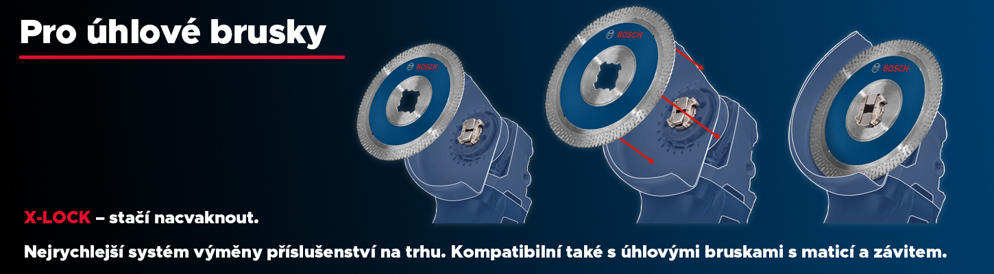 - X-LOCK – stačí nacvaknout. Nejrychlejší systém výměny příslušenství na trhu. Kompatibilní také s úhlovými bruskami s maticí a závitem.