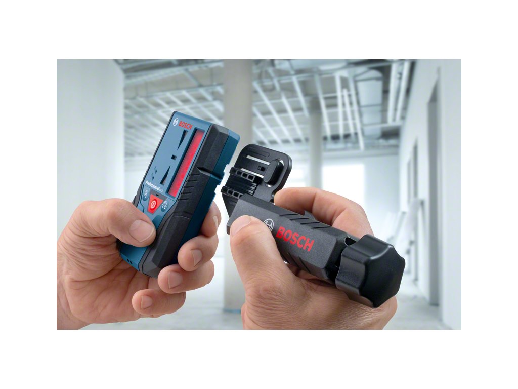 Tento držák slouží k fixaci laserových přijímačů na nivelační latě nebo jiné profilované prvky. Je plně optimalizován pro modely Bosch LR 6 a Bosch LR 7, které do držáku jednoduše zaklapnete. Je ideální pro všechny měřicí práce v interiéru i exteriéru, kde je vyžadována vysoká stabilita přijímače pro přesný odečet hodnot.