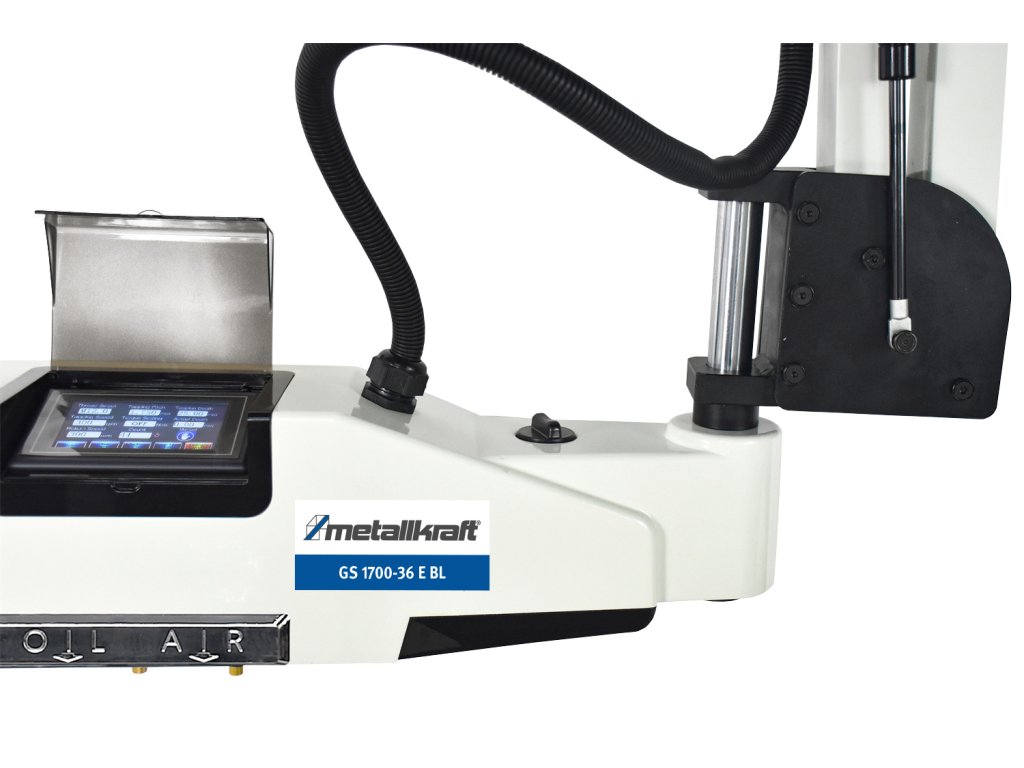 Elektrický závitořez Metallkraft® GS 1700-36 E BL je navržen pro náročné průmyslové provozy, kde je kladen důraz na rychlost, přesnost a eliminaci zmetkovitosti. Volně polohovatelné rameno s poloměrem 1 700 mm dovoluje obsluze pokrýt rozsáhlou pracovní plochu bez nutnosti manipulace s těžkým obrobkem. Stroj je vybaven inteligentním dotykovým ovládáním, které umožňuje precizní nastavení velikosti závitu, stoupání i cílové hloubky řezu. Bezpečnost nástroje zajišťuje rychloupínací sklíčidlo s kluznou spojkou, která zabraňuje zlomení závitníku při nárazu na dno slepého otvoru. Integrovaný systém mazání a ofukování dále zvyšuje kvalitu závitu a šetří břity nástrojů.