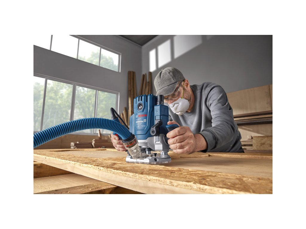 - Ano, součástí balení jsou dva specializované adaptéry. Jeden pro odsávání při frézování ploch a druhý, účinnější, pro práci na hranách materiálu. Připojením dílenského vysavače dosáhnete velmi čistého pracovního prostředí.