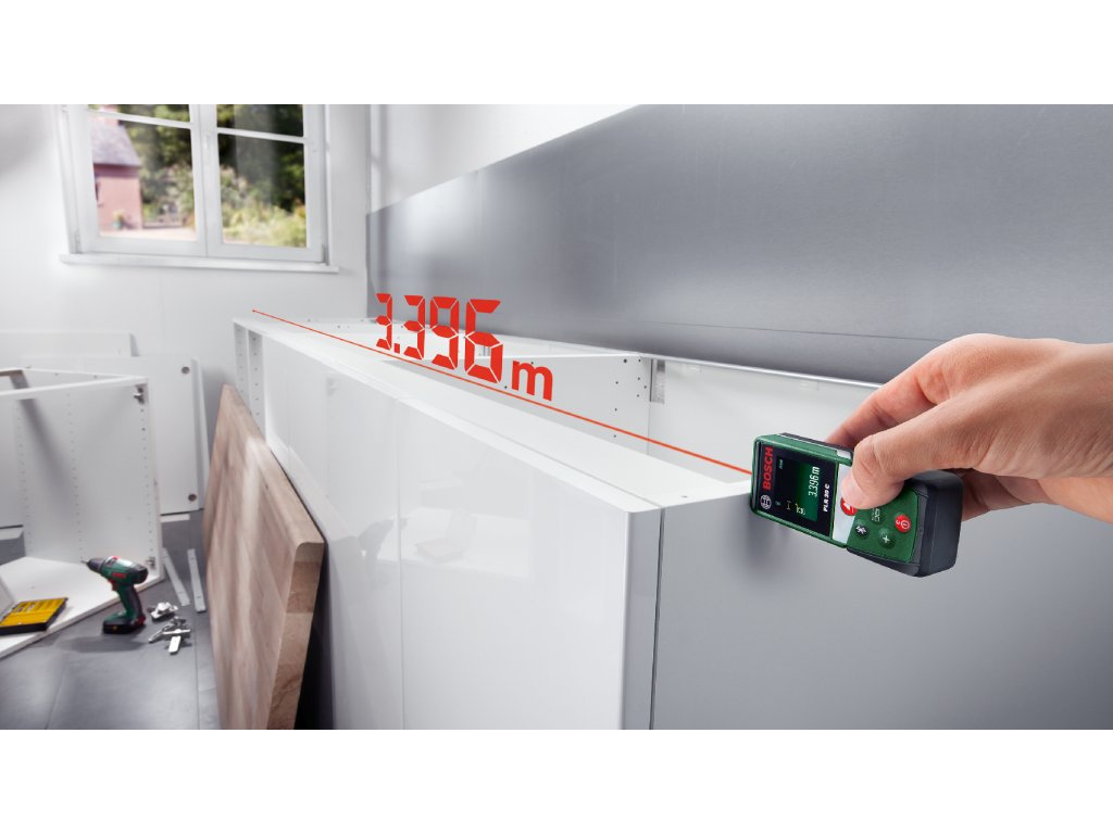 Měřicí přístroj je určený k měření vzdáleností, délek, výšek, odstupů, sklonů a pro výpočet ploch a objemů. Měřicí přístroj je vhodný pro používání v interiérech. Výsledky měření lze přes Bluetooth® přenést do jiných zařízení.