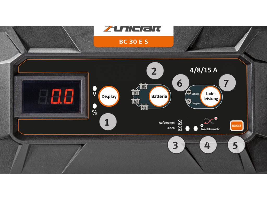 Nabíječka Unicraft® BC 30 E S představuje robustní a technologicky vyspělé zařízení pro správu akumulátorů v osobních i nákladních automobilech. Na rozdíl od levných nabíječek disponuje automatickou detekcí napětí, která eliminuje chybu obsluhy při přepínání mezi 12V a 24V systémy. Podsvícený displej poskytuje okamžitý přehled o fázích nabíjení a stavu baterie. Velkou výhodou je udržovací režim, který chrání baterii před hlubokým vybitím během dlouhého stání (např. u motocyklů či karavanů přes zimu), a speciální zimní program, který si poradí s chemickými procesy v elektrolytu i při teplotách hluboko pod nulou.