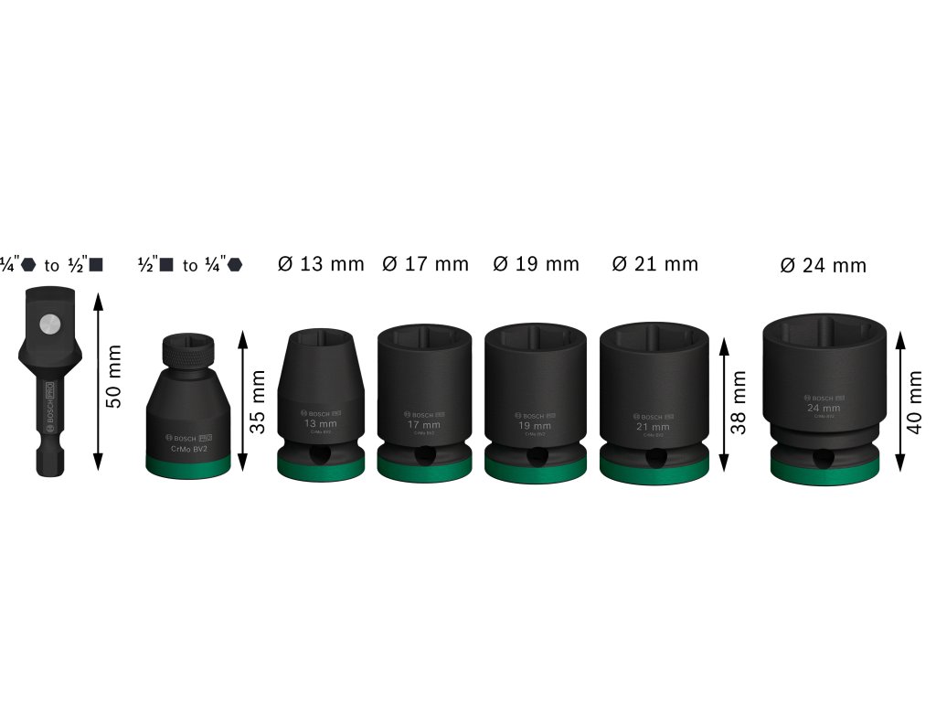 Nástrčná sada Bosch PRO Impact s adaptérem, ½″, standardní, 7 ks