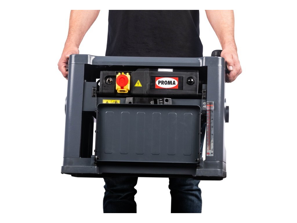 Tloušťkovací frézka PROMA FTP-330/230V S je absolutní špičkou ve své třídě, navržená pro ty, kteří vyžadují nekompromisní kvalitu povrchu a komfort při práci. Hlavní devizou je hoblovací válec osazený 30 karbidovými žiletkami ve spirále. Tato technologie nejenže snižuje hluk o polovinu oproti běžným nožům, ale také eliminuje vytrhávání vláken i u problematického dřeva. Díky kompaktní konstrukci s výklopnými stoly a bočními madly ji snadno převezete na montáž nebo uskladníte v menší dílně, aniž byste přišli o výkon profesionálního stroje.