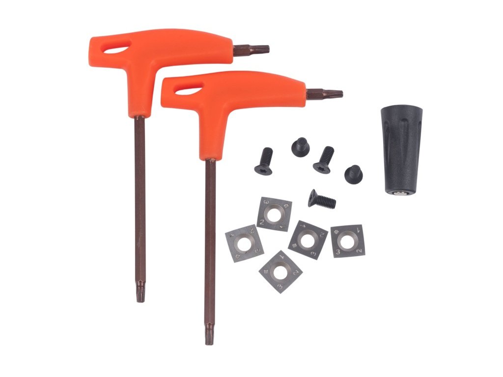 To je největší výhoda tohoto systému. Nemusíte měnit celou sadu nožů. Stačí povolit a otočit (nebo vyměnit) jen ty 1-2 žiletky, které přišly do kontaktu s kovem. Náhradních 5 kusů máte rovnou v balení.