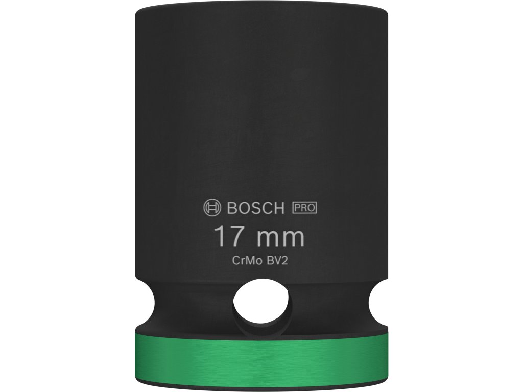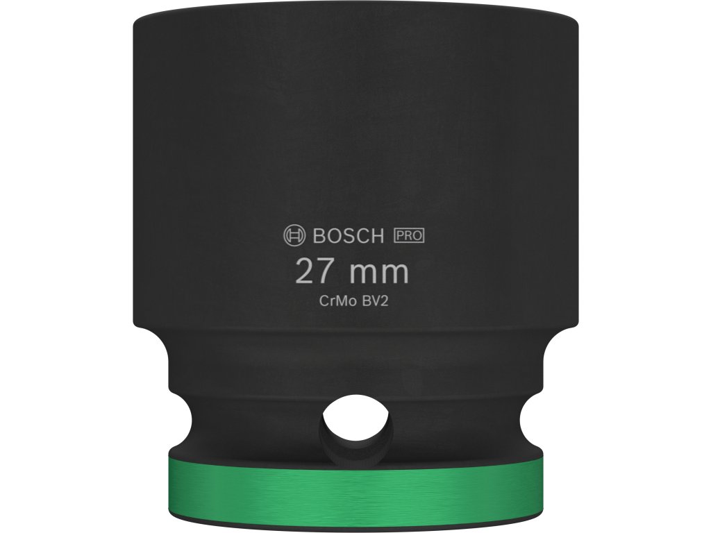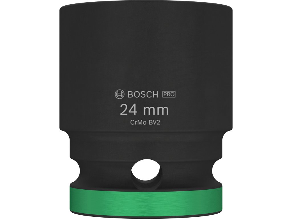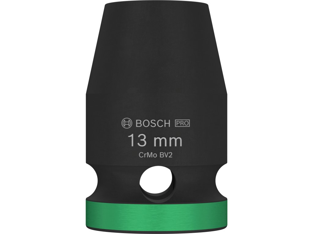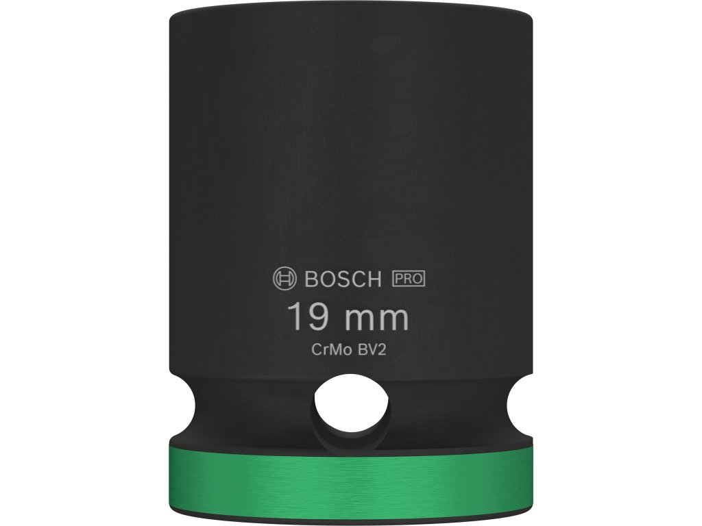 Průmyslová rázová nástrčná hlavice Bosch PRO Impact s upínáním 1/2" je navržena pro nejnáročnější šroubovací úkoly v těžkém průmyslu, při stavbách závodů a dalších profesionálních aplikacích vyžadujících maximální odolnost a výkon. Tuto hlavici můžete použít k práci se šestihrannými šrouby a maticemi pomocí rázového utahováku s 1/2" čtyřhranným upínáním. Je vyrobena z tepelně zpracované chrom-molybdenové oceli (CRMO) a má zesílené stěny, aby spolehlivě odolávala extrémně vysokému krouticímu momentu. Povrchová úprava černým fosfátovým povlakem zajišťuje vynikající ochranu proti korozi. Pro snadnou identifikaci je hlavice opatřena laserovým a barevným značením. Disponuje také drážkou a průchozím otvorem pro bezpečné zajištění na unašeči rázového utahováku pomocí zajišťovacího kolíku a O-kroužku.