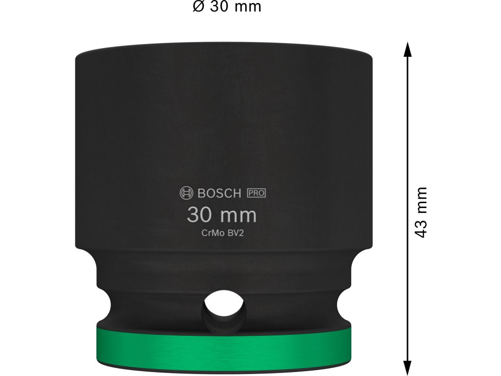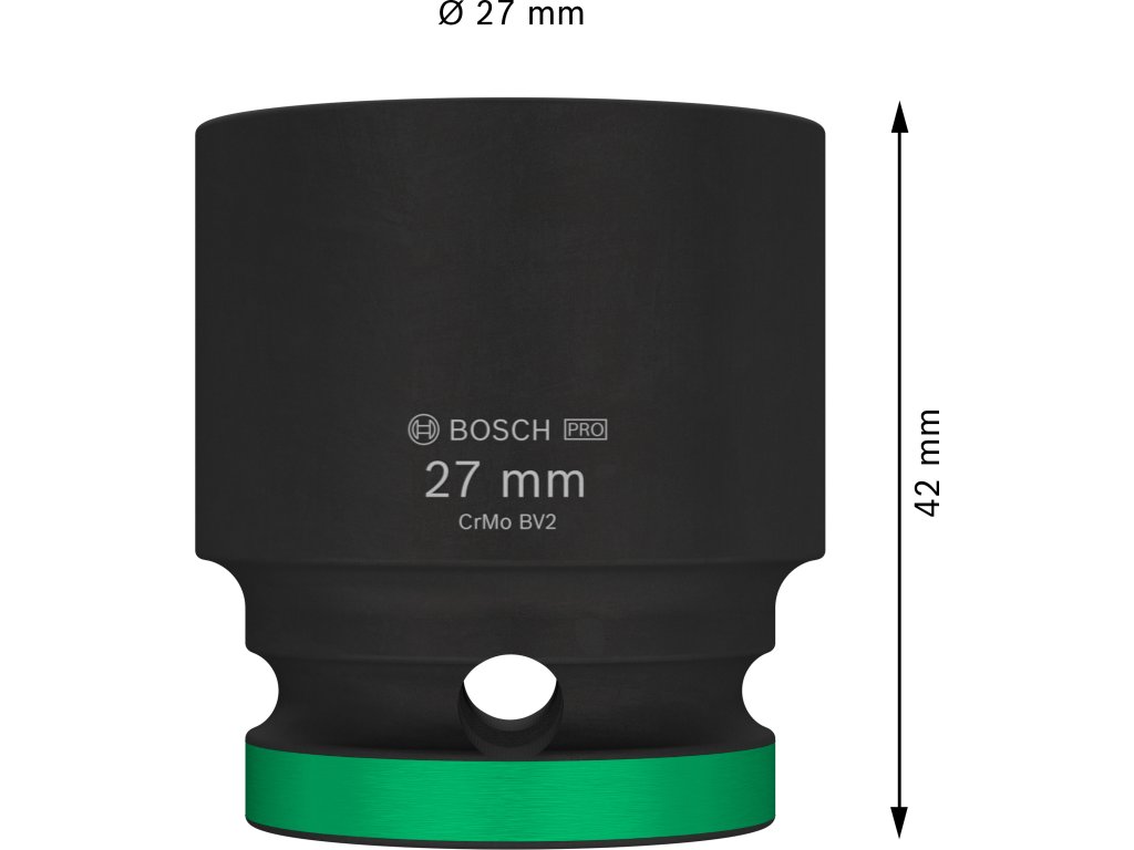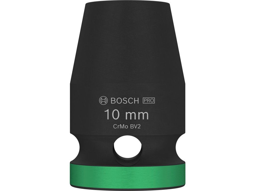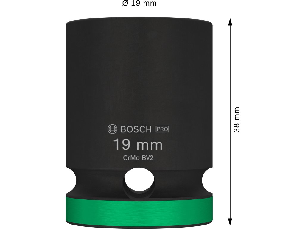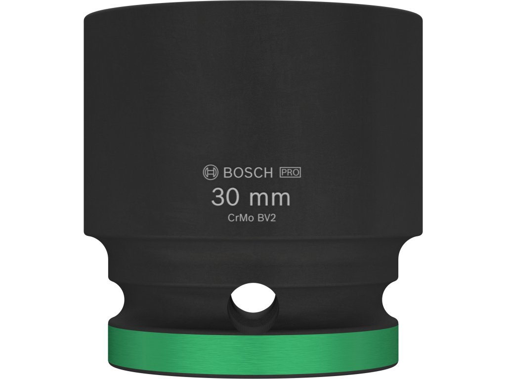 Průmyslová rázová nástrčná hlavice Bosch PRO Impact s upínáním 1/2" je navržena pro nejnáročnější šroubovací úkoly v těžkém průmyslu, při stavbách závodů a dalších profesionálních aplikacích vyžadujících maximální odolnost a výkon. Tuto hlavici můžete použít k práci se šestihrannými šrouby a maticemi pomocí rázového utahováku s 1/2" čtyřhranným upínáním. Je vyrobena z tepelně zpracované chrom-molybdenové oceli (CRMO) a má zesílené stěny, aby spolehlivě odolávala extrémně vysokému krouticímu momentu. Povrchová úprava černým fosfátovým povlakem zajišťuje vynikající ochranu proti korozi. Pro snadnou identifikaci je hlavice opatřena laserovým a barevným značením. Disponuje také drážkou a průchozím otvorem pro bezpečné zajištění na unašeči rázového utahováku pomocí zajišťovacího kolíku a O-kroužku.