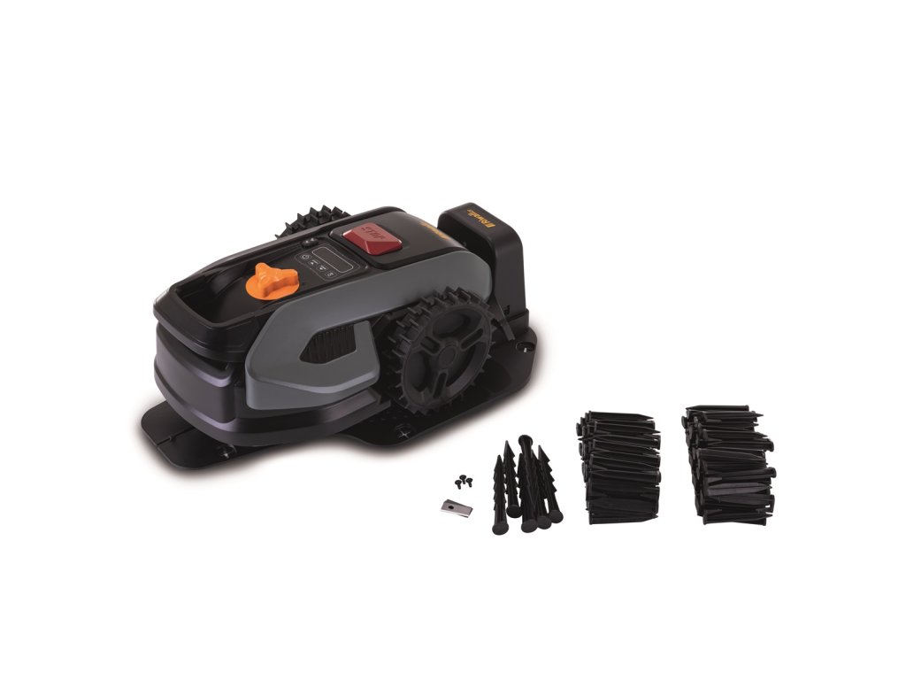 RRM 500 má odpružený plášť. Při jemném nárazu do překážky robot zastaví, inteligentní software vyhodnotí situaci a zvolí jiný směr jízdy. Přesto doporučujeme nenechávat na trávníku drobné hračky či jiné předměty.