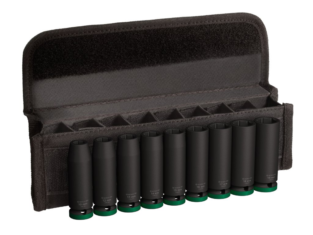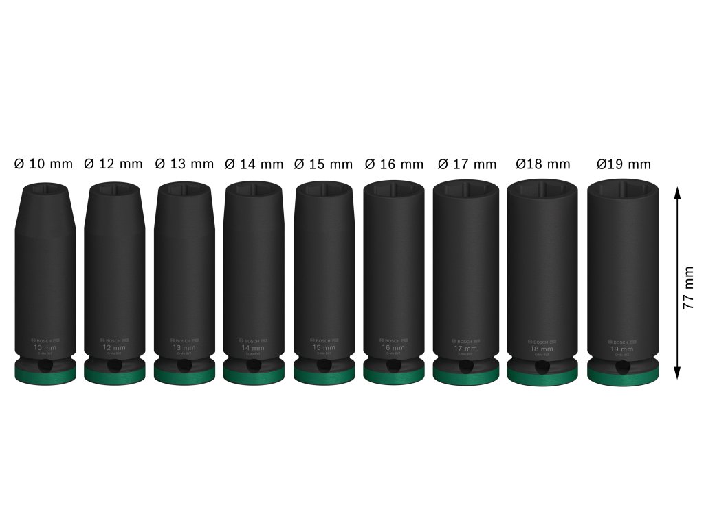 Sada prodloužených rázových nástavců Bosch PRO (1/2") - 9 ks (10-19mm), délka 77mm