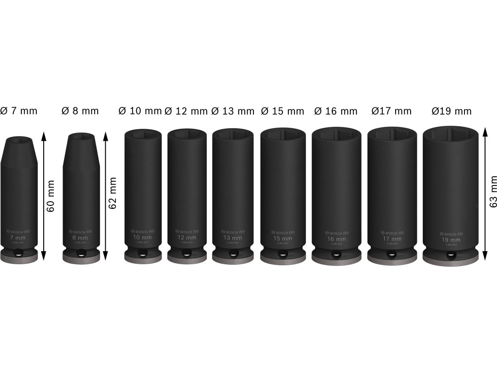 7mm (60mm), 8mm (62mm), 10-19mm (63mm)