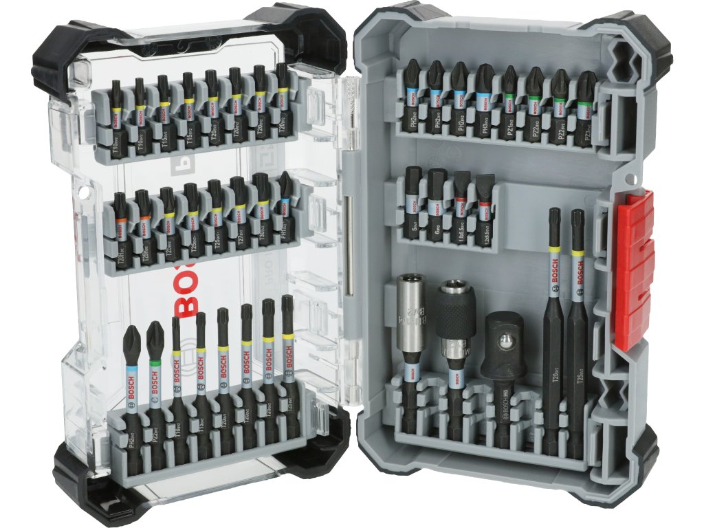 Tato 41dílná sada Bosch PRO Impact je navržena jako ultimativní řešení pro profesionály v nejrůznějších oborech – od stavebnictví, přes automobilové opravy, až po montáže nábytku a elektrotechnické práce. Díky obsahu široké škály šroubovacích bitů (včetně PH, PZ, Torx, Hex, SL a bezpečnostních Torx), tří různých délek bitů, adaptéru pro ½″ nástrčné klíče a dvou typů držáků bitů, je tato sada připravena na jakoukoliv výzvu, zejména při práci s rázovými utahováky.