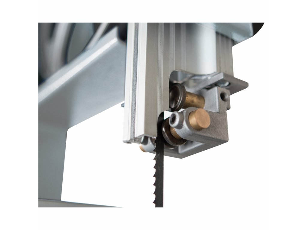 - Precizní vedení pilového pásu na třech válečcích (nad i pod stolem).