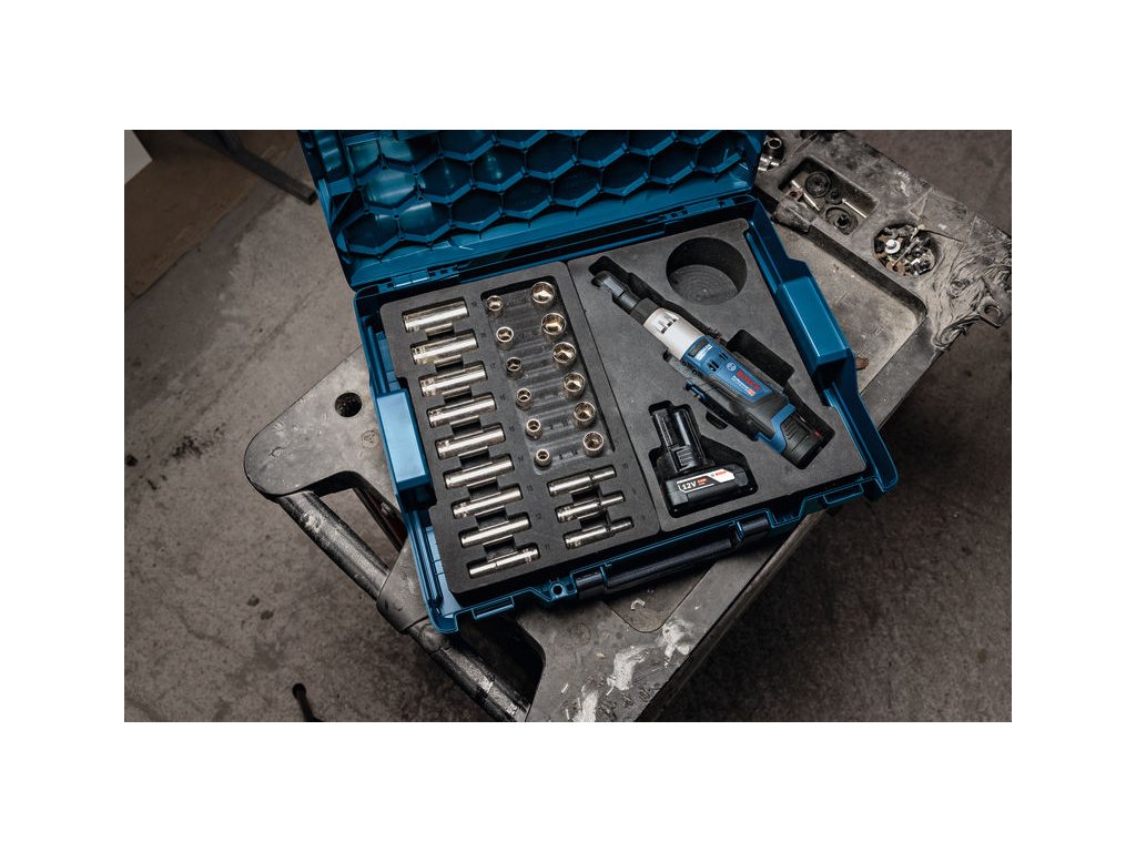 - Račňový skrutkovač je plne kompatibilný so všetkými 12V akumulátormi z profesionálneho modrého radu Bosch.