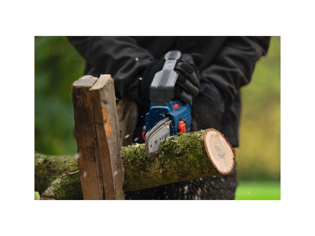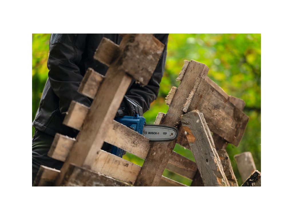 Aku reťazová píla Bosch GKE 18V-15 Professional je navrhnutá pre maximálny výkon v kompaktnom prevedení. Jej nízka hmotnosť (len 1,75 kg) a premyslený dizajn ju robí ideálnou pre prerezávanie a rezanie aj silnejších vetiev v ťažko prístupných oblastiach. Výkonný bezuhlíkový motor zaručuje dlhú životnosť a konštantný výkon aj pri zaťažení. Pre zvýšenie bezpečnosti je píla vybavená gyroskopickým senzorom, ktorý monitoruje pohyb av prípade detekcie potenciálneho spätného rázu okamžite zabrzdí reťaz. Funkcia ako automatické mazanie a napínanie reťaze bez použitia náradia zvyšujú efektivitu a komfort pri práci. S touto pílou zvládnete na jedno nabitie akumulátora až 350 rezov.