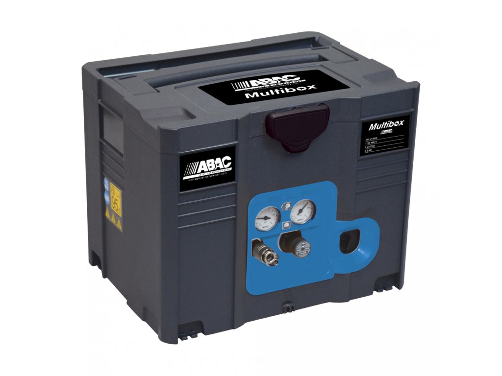 Kompresor z radu Multibox v bezolejovom prevedení so spojením elektromotora s kompresorovou jednotkou pomocou plochého klinového remeňa poskytuje sací výkon 160 l/min a je určený pre menšie profesionálne aplikácie s vysokými nárokmi na mobilitu stroja. Kompresor disponuje nasledujúcim štandardným vybavením: