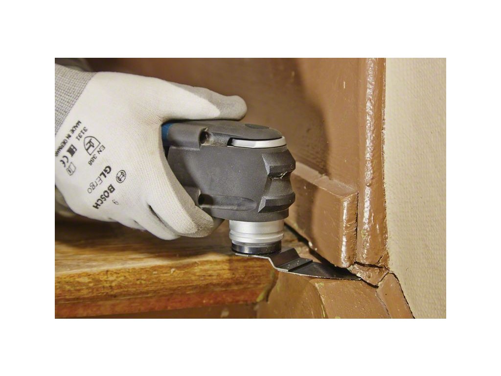 Karbidový ponorný pílový list s tvrdokovovými zrnami Bosch RIFF AVZ 32 RT10 pri práci