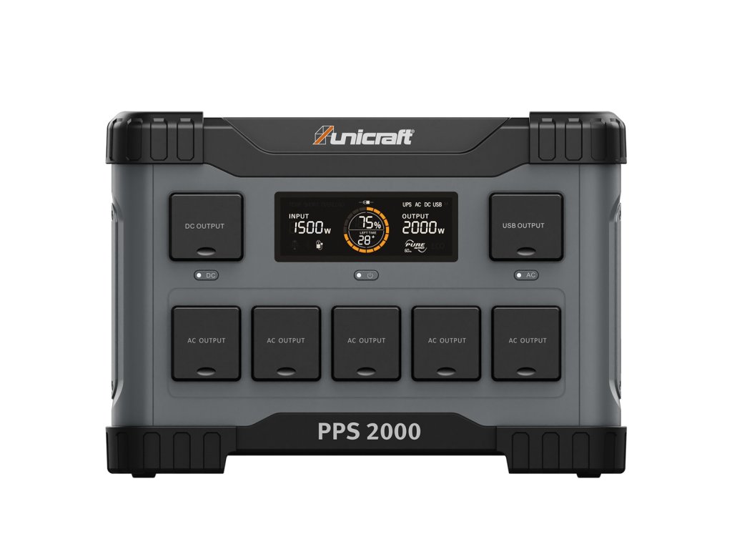 Nabíjacia stanicaUnicraft® PPS 2000 predstavuje absolútnu špičku v mobilnom napájaní. S obrovskou kapacitou 1843 Wh a schopnosťou dodávať trvalý výkon 2000 W (špičkovo až 4000 W) sa už nemusíte obmedzovať. Táto stanica utiahne nielen chladničku či notebook, ale aj uhlovú brúsku, vŕtacie kladivo alebo kávovar. Vďaka piatim 230V zásuvkám a modernému LiFePo4 akumulátoru so životnosťou cez 10 rokov ide o najvšestrannejší zdroj energie, ktorý môžete mať v dielni, na stavbe alebo ako nepriestrelnú zálohu pri výpadku prúdu (funkcia UPS).