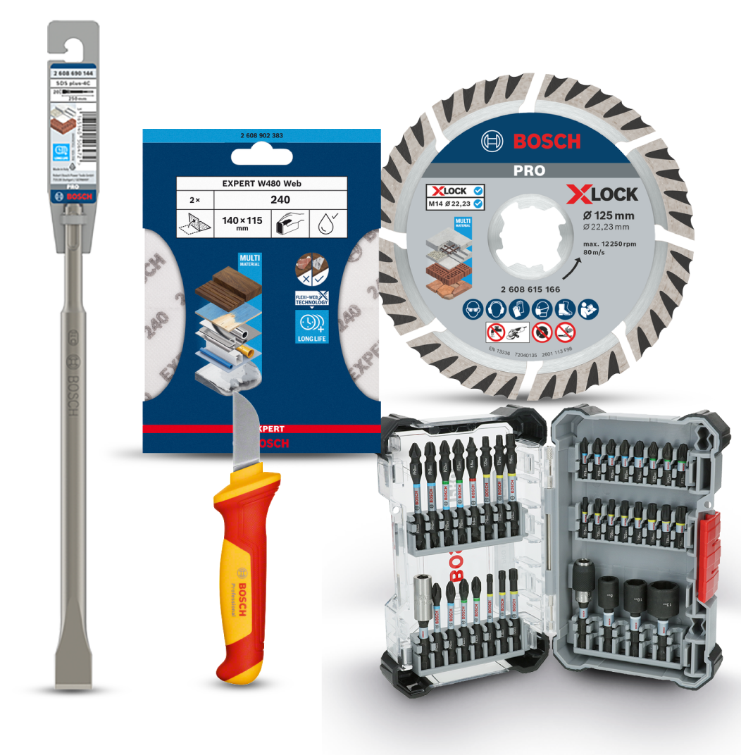 ODMENYZakúpte sadu príslušenstva alebo ručného náradia Bosch Professional a získajte ďalší produkt navrhnutý ako doplnok k vášmu nákupu – pomôže vám zvládnuť vaše úlohy ešte efektívnejšie. Pozrite sa do tabuľky, aby ste zistili, akú odmenu obdržíte na základe segmentu zakúpenej sady. Poponáhľajte sa, odmeny sú k dispozícii iba do vypredania zásob. |