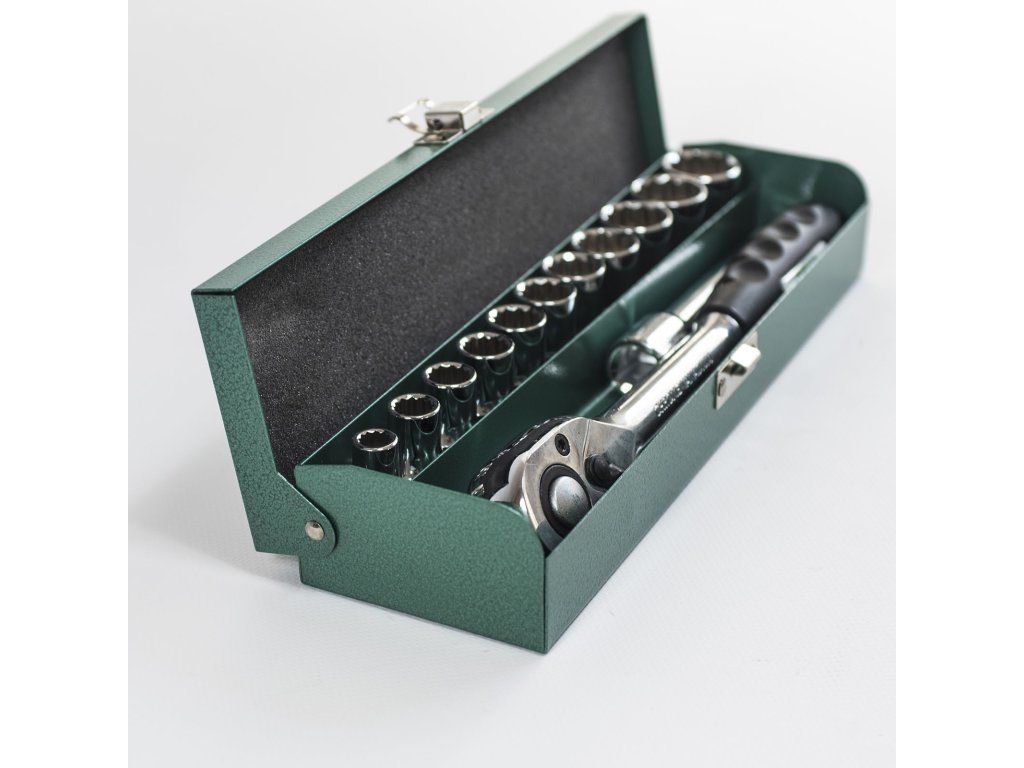 Gola sada Honiton 1/2" 13 dielov je navrhnutá pre maximálnu efektivitu pri práci. Jej hlavnou výhodou je 12-hranný profil hlavíc, Ktorý ponúka dvojnásobný počet polôh pre nasadenie na skrutku oproti klasickému šesťhranu. To je neoceniteľné v moderných motoroch, kde je manipulačný priestor pre račňu extrémne limitovaný. Srdcom sady je silová račňa s 36 zubami, ktorej mechanizmus je dimenzovaný na vysoké zaťaženie pri povoľovaní stuhnutých spojov. Všetky diely sú vyrobené z vysoko kvalitnej chróm-vanádiová oceľ, ktorá spĺňa prísnu priemyselnú normu DIN 3124, čo zaručuje dlhú životnosť a bezpečnosť pri práci.