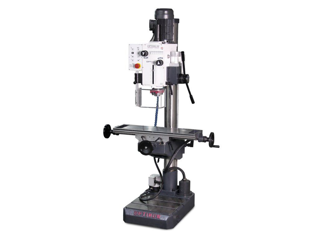 Stĺpová vŕtačka OPTIMUM® OPTIdrill DH 40 CTPE predstavuje vysoko univerzálne riešenie pre nástrojárne a údržbárske dielne. Od bežných stĺpových vŕtačiek sa líšia masívnym krížovým stolom, Ktorý umožňuje presné polohovanie a frézovacie operácie s nožovými hlavami do o 76 mm. Srdcom stroja je robustná prevodovka s brúsenými kolesami v olejovom kúpeli, zaisťujúca tichý chod a obrovský krútiaci moment v 12 rýchlostných stupňoch. Vďaka samostatnému motoru pre strojný posun pinoly a integrovanému závitovaciemu cyklu sa jedná o vysoko produktívny stroj, ktorý zvládne vŕtanie do ocele až do o 32 mm s úplnou suverenitou.
