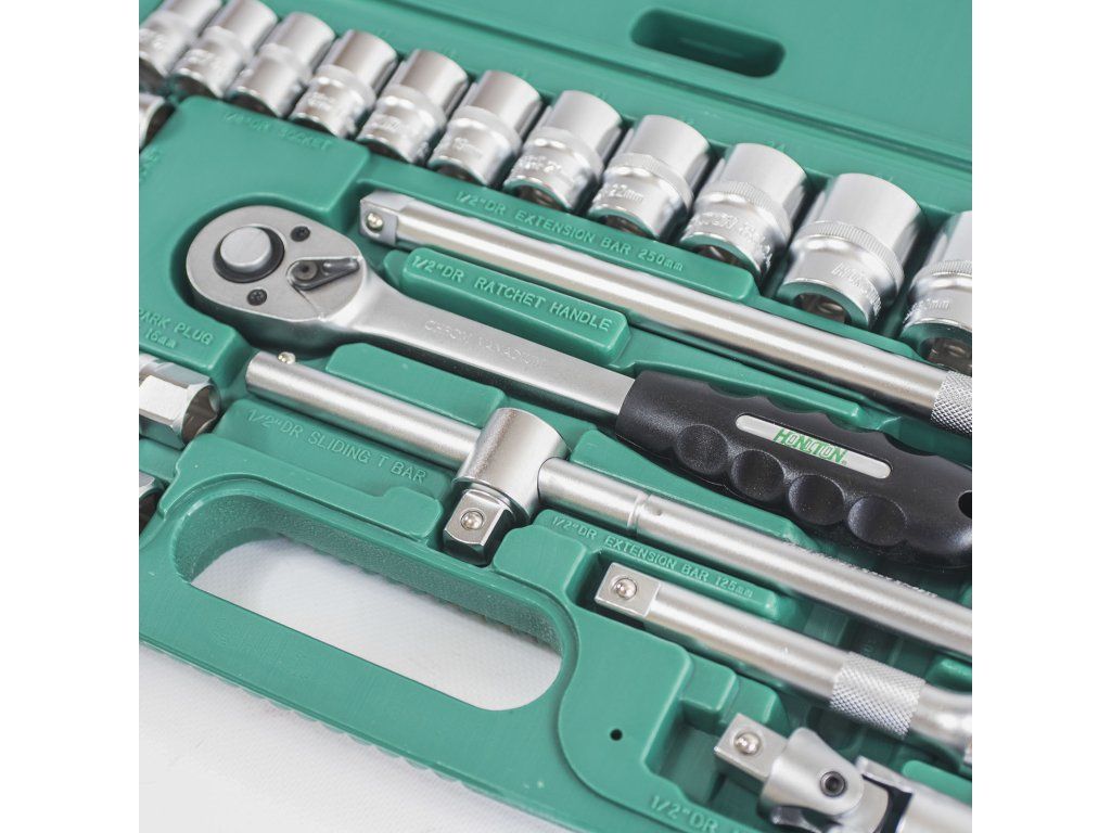 Gola sada Honiton 1/2" s 25 dielmi je navrhnutá pre najťažšie úlohy v autoservisoch, dielňach aj pri údržbe poľnohospodárskej techniky. Tento systém využíva robustný 1/2" pohon, ktorý je ideálny na prenos vysokých krútiacich momentov. Všetky súčasti sú vyrobené z húževnaté chróm-vanádiovej ocele, ktorá prešla prísnym testovaním a spĺňa priemyselnú normu DIN 3124. Súprava obsahuje všetko potrebné pre kompletný servis podvozkových častí, kolies i motorov, vrátane dvoch rozmerov sviečkových kľúčov a predĺženia pre prácu v hlbokých priestoroch.