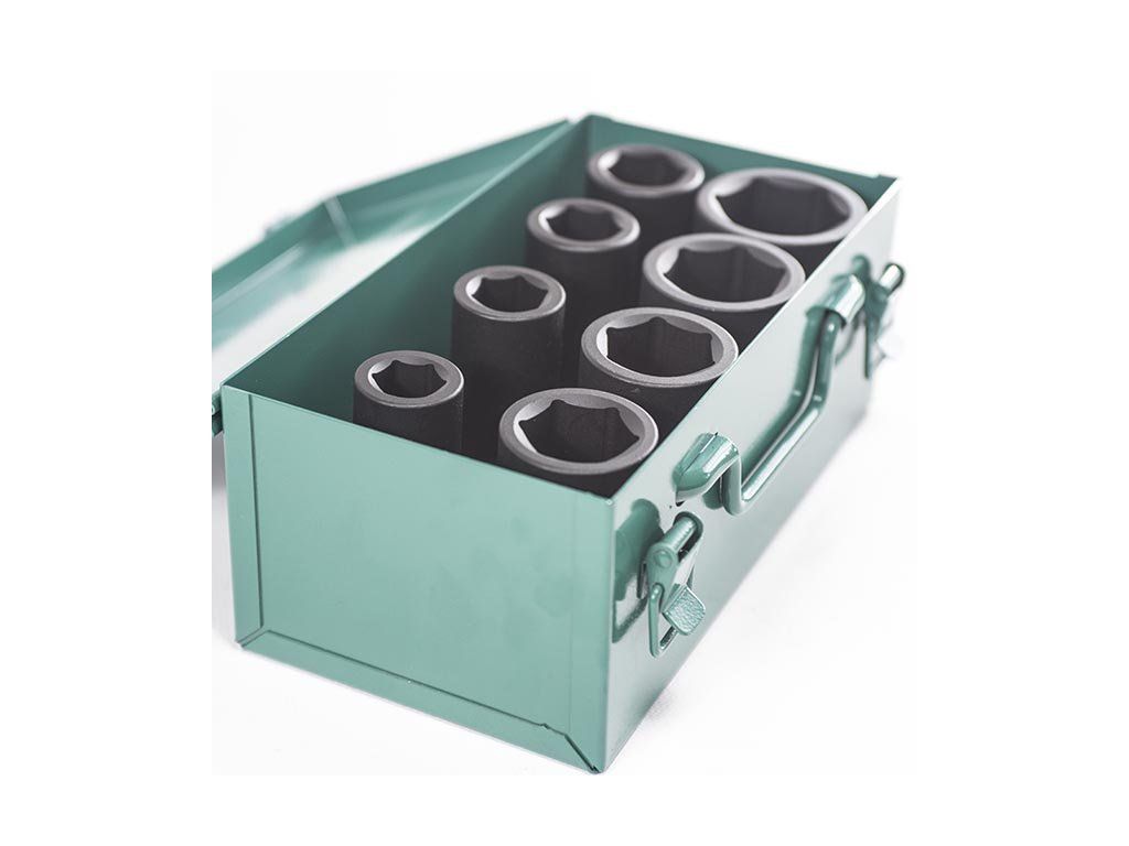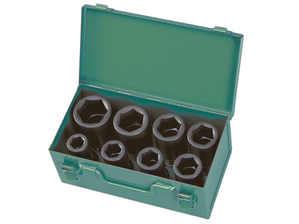 Sada obsahuje 8 kusov: 19, 22, 24, 27, 30, 32, 36, 41 mm. Pokrýva kľúčové matice kolies a podvozkov nákladných áut.
