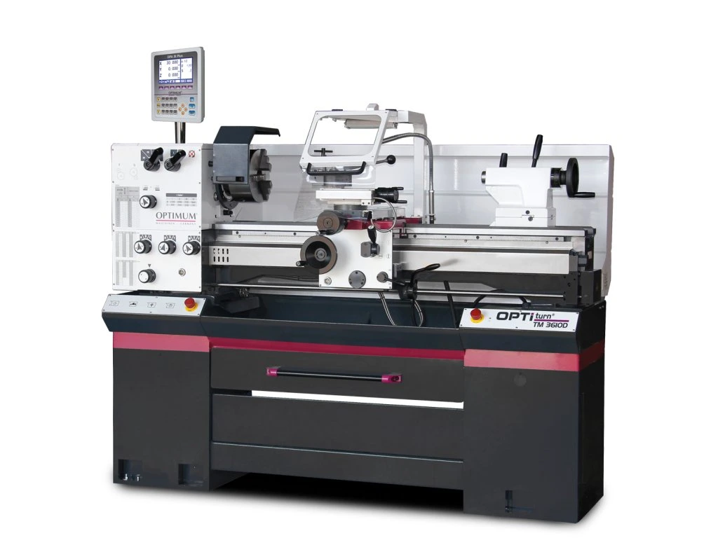 Univerzálny hrotový sústruh OPTIturn OPTIMUM® TM 3610 D predstavuje ideálne riešenie pre nástrojárne, opravárenské prevádzky aj náročnú zákazkovú výrobu. Stroj je už v základe vybavený 3osým digitálnym odmeriavaním DPA 31 Plus, ktoré dramaticky zvyšuje efektivitu práce a minimalizuje chyby pri meraní. Robustné liatinové lôžko s kalenými vodiacimi dráhami a vreteno s hádzavosťou pod 0,015 mm zaručujú špičkovú kvalitu povrchu a presnosť lícovania. S nadštandardným priechodom vretena 52 mm a upínacím systémom Camlock č. 5 sa jedná o vysoko variabilný stroj, ktorý si poradí ako s jemným dokončovaním, tak s ťažkým hrubovaním hriadeľov, závitov aj prírub.