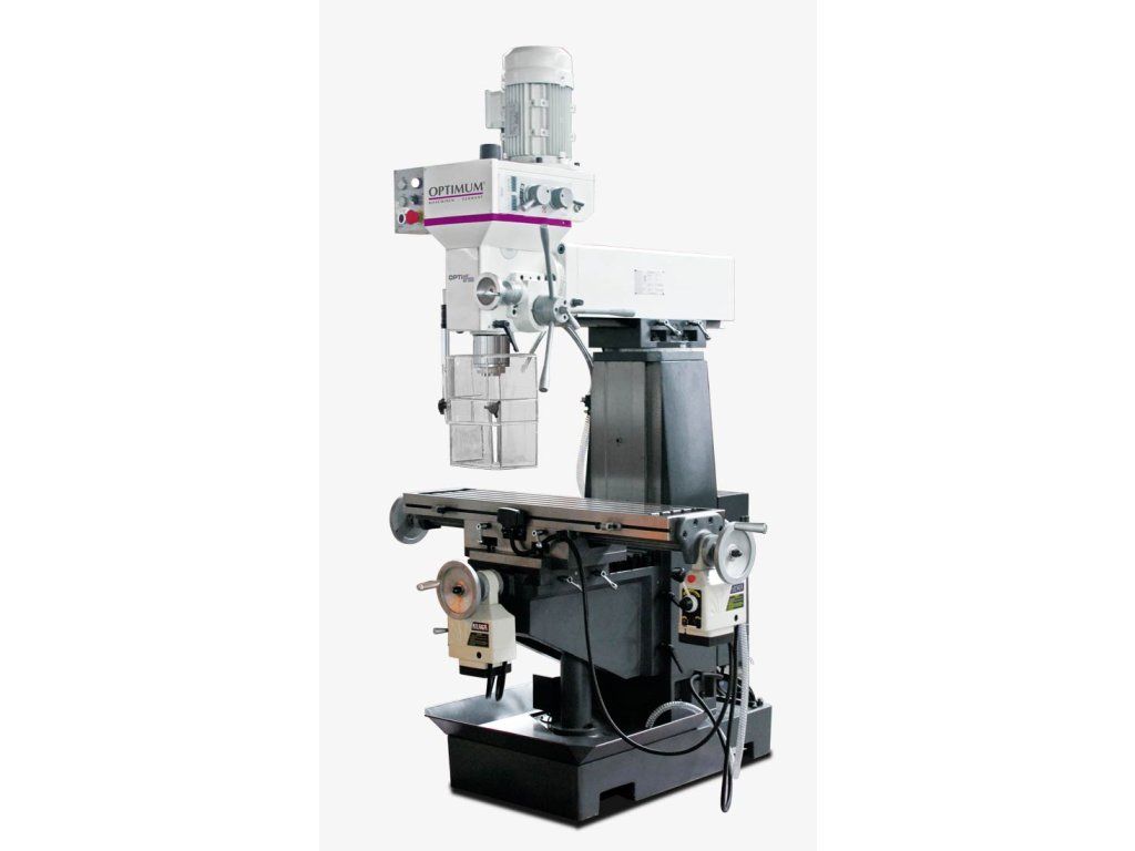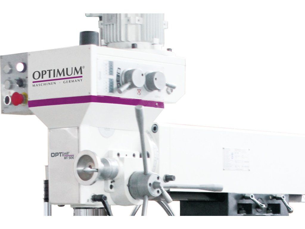 Univerzálna frézka OPTIMUM® OPTImill MT 50 E predstavuje nekompromisné riešenie pre dielne vyžadujúce spojenie dvoch strojov v jednom tele. Unikátna koncepcia umožňuje vykonávať ako štandardné vertikálne frézovanieahorizontálne obrábanie pomocou doplnkového vretena. Masívna konštrukcia s hmotnosťou 760 kg z kvalitnej šedej liatiny efektívne pohlcuje vibrácie, čo zaisťuje precízny povrch aj pri ťažkom hrubovaní. Stroj je vybavený priemyselným upínaním SK 40, ktoré zaručuje obrovskú silu v zábere, a automatickými posuvmi v pozdĺžnej i priečnej osi, čo dramaticky zvyšuje komfort a efektivitu práce. S prevodovkou bežiacou v olejovom kúpeli a integrovaným chladiacim systémom je MT 50 E pripravená na náročné nasadenie v nástrojárňach aj opravárenských prevádzkach.