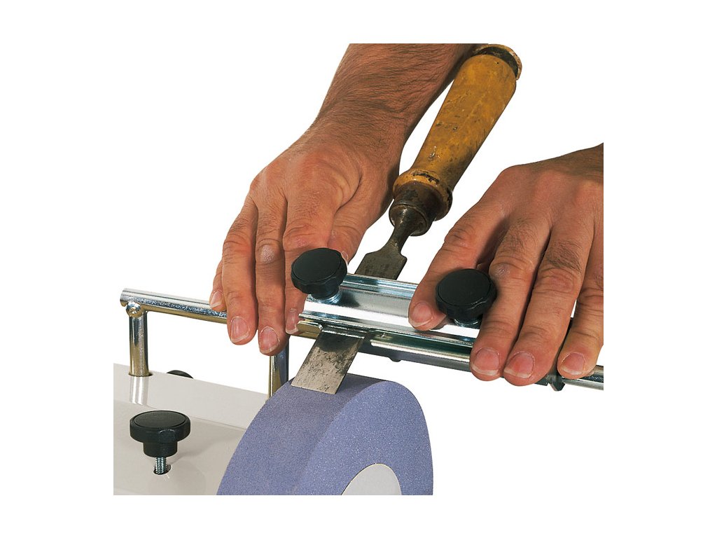 - Dokonalá geometria: Prípravok udržuje nástroj v úplne kolmej polohe voči brúsnemu kotúču, čo je nevyhnutné pre správnu funkciu dláta či hoblíka.
