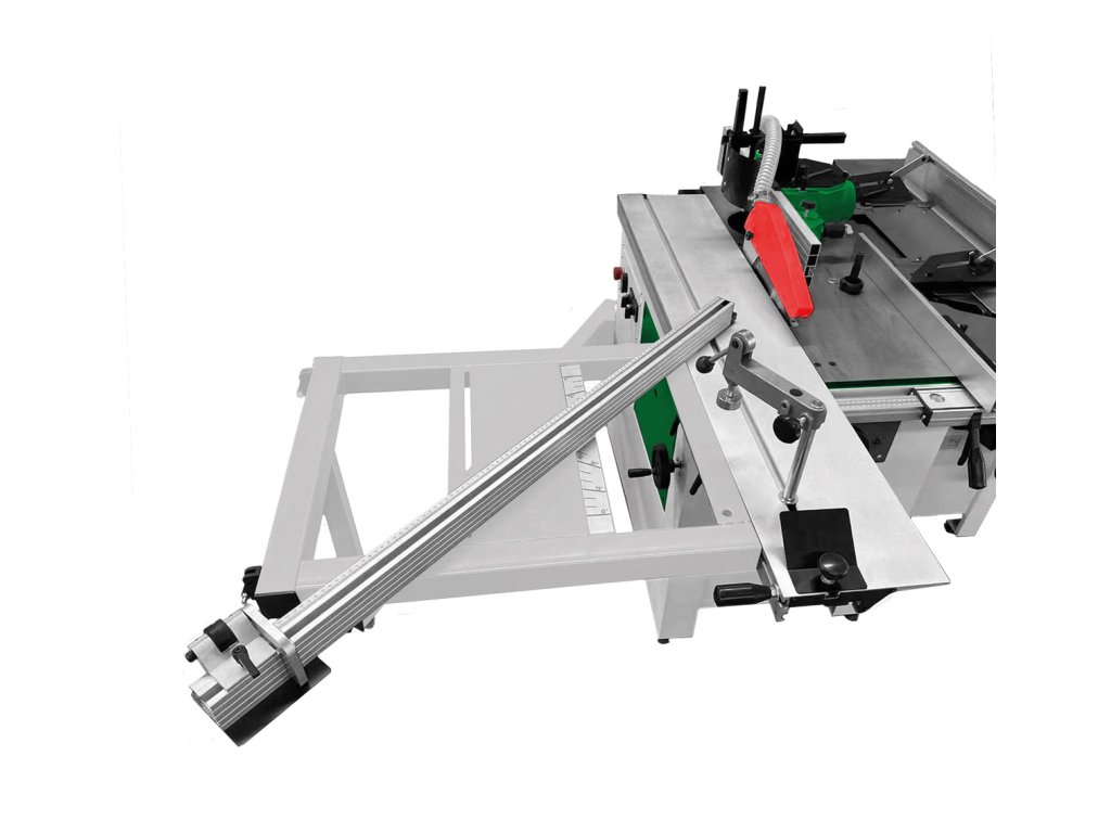 - Hliníkový podélný doraz s tyčovým vedením a jemným nastavením