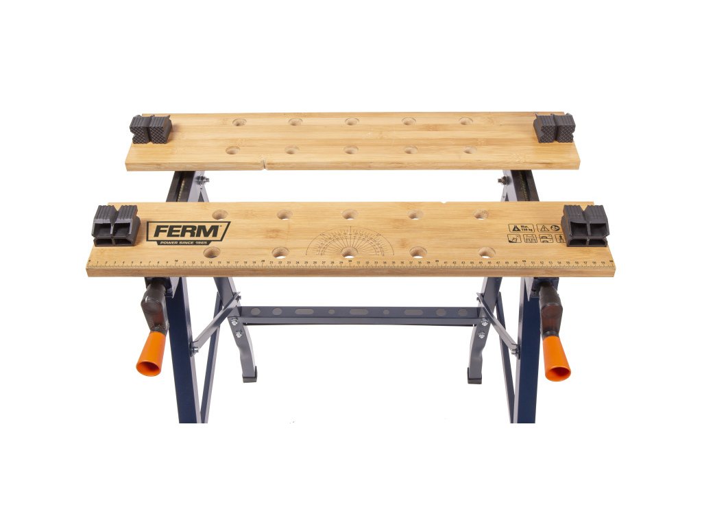 Tento skládací pracovní stůl je navržen a určen pro použití v domácích dílnách, pro upínání položek pro obrábění, jako je řezání, natírání nebo čištění, broušení, leštění a lepení v domácnosti nebo na zahradě.- Bambusová pracovní deska