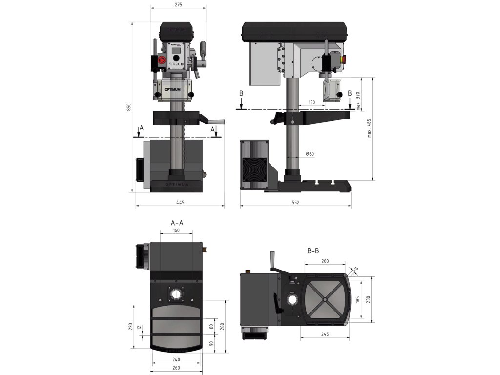 | Max. vzdálenost vřetene a základny: | 485 mm |