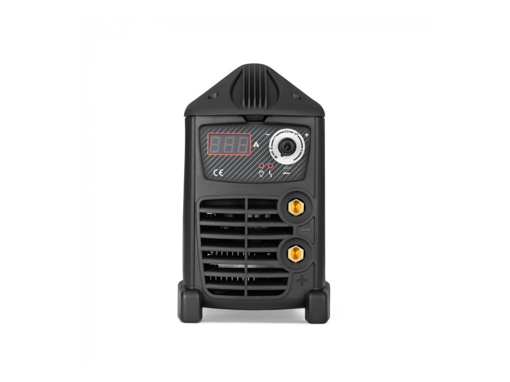 Displej zobrazuje aktuálně nastavený svařovací proud v Ampérech. To umožňuje přesné seřízení stroje podle průměru zvolené elektrody a tloušťky svařovaného materiálu, což výrazně zvyšuje kvalitu práce.