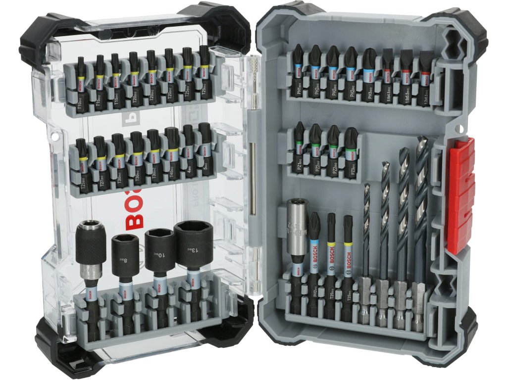 - Vysoce univerzální 40dílná sada: Kombinuje 31 šroubovacích bitů Impact Control (včetně PH, PZ, Torx, Hex, SL), 4 vrtáky do kovu HSS-G, 3 nástrčné klíče a 2 typy držáků bitů.