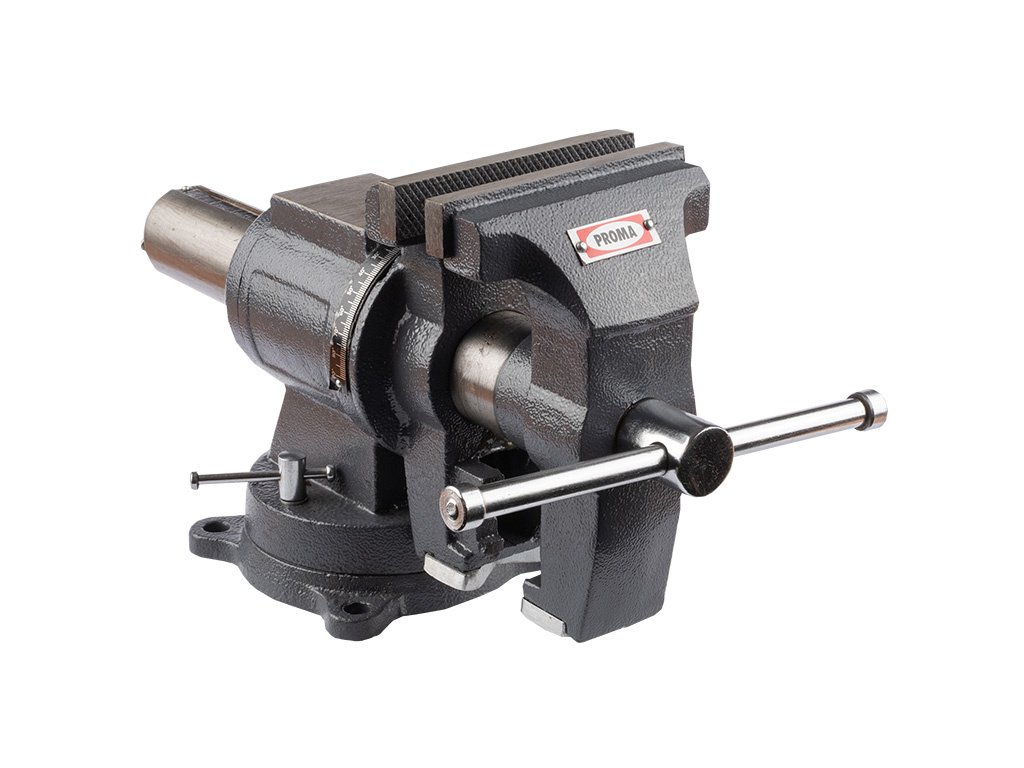 Svěrák PROMA VS-125 posouvá možnosti běžného upínání na novou úroveň. Díky dvouosému otočnému mechanismu (horizontální točna 90° a vertikální rotace hlavy 360°) se tento nástroj přizpůsobí vašemu obrobku, nikoliv naopak. Čelisti o šířce 135 mm s hloubkou 75 mm poskytují enormní úchopnou plochu, což je klíčové pro stabilní fixaci větších dílů při broušení, řezání či pilování. Vysoká tvrdost čelistí 45 HRC zamezuje jejich deformaci a rýhování zajišťuje, že obrobek nevyklouzne ani při extrémním tlaku. Integrovaný systém pro upínání trubek na spodní straně hlavy dělá z tohoto modelu univerzální stanici pro zámečníky, instalatéry i mechaniky.
